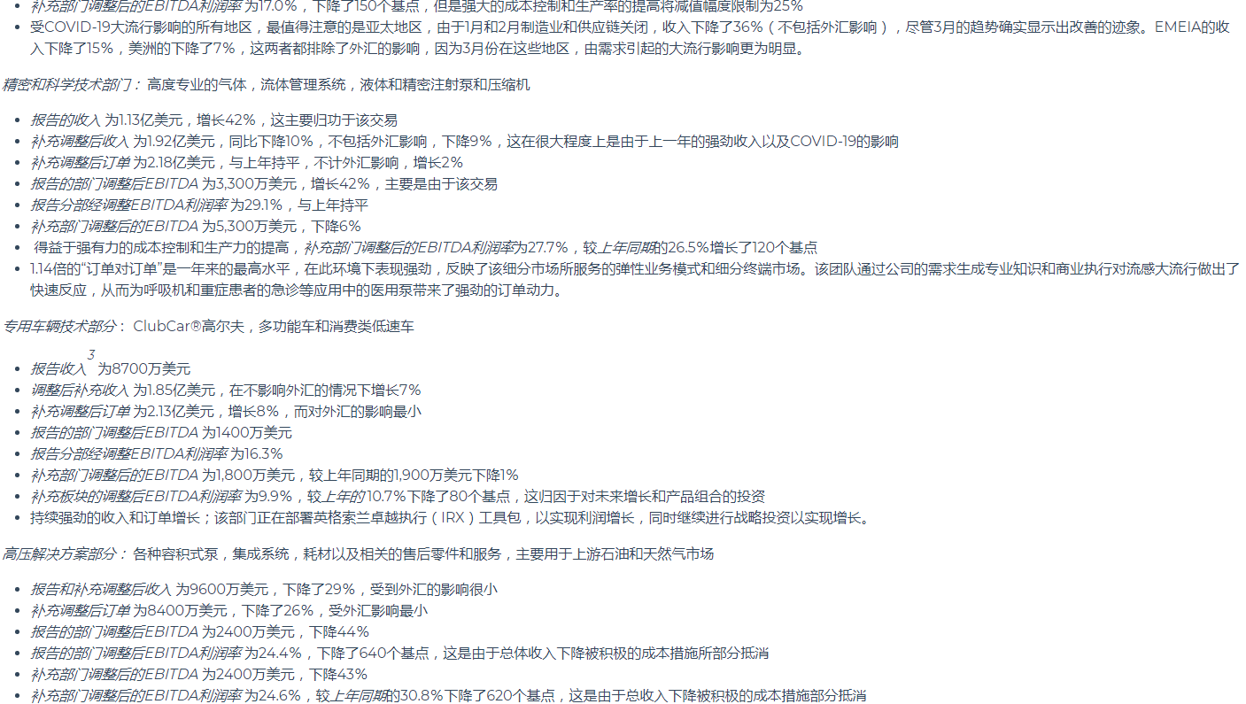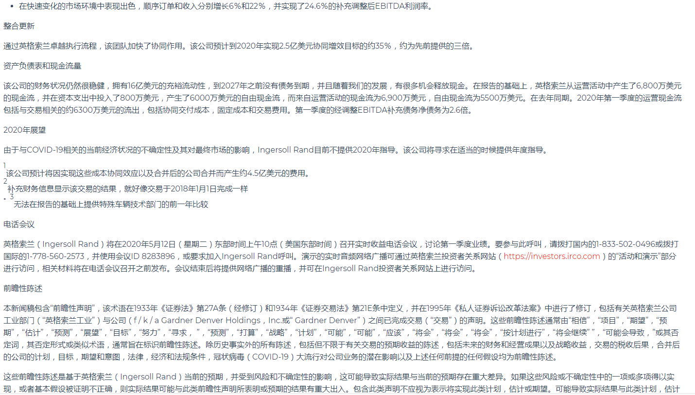 英格索蘭公布2020年第一季度業(yè)績